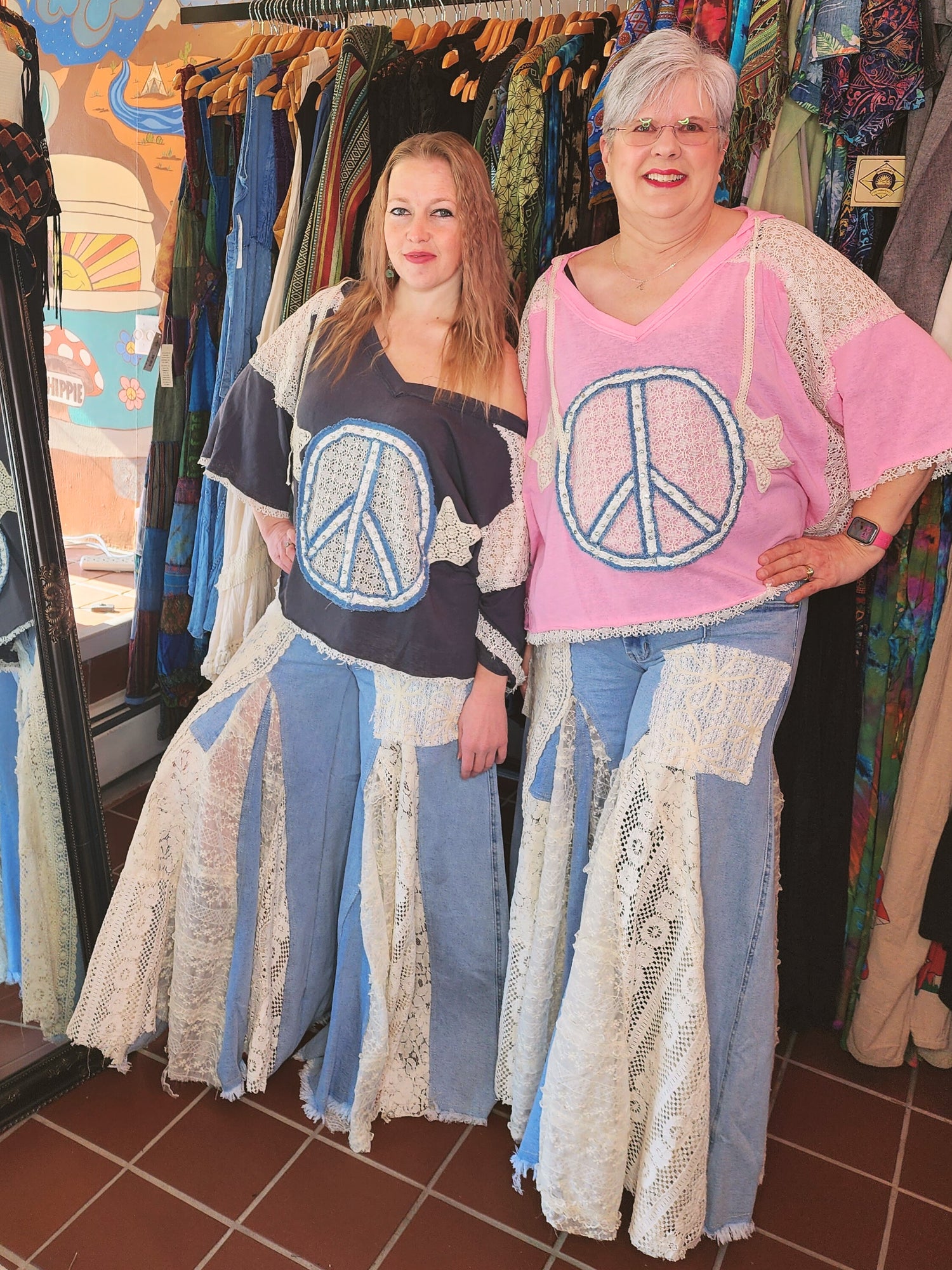 Flowy Mushroom/Celestial Wide Leg Cotton PantsFlowy Mushroom/Celestial Wide Leg Cotton Pants