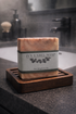 Swirled in rich wood tones and infused with a smooth, sensual sandalwood blend, it comes alive in the steam of a hot shower—warm, grounding, and timeless.